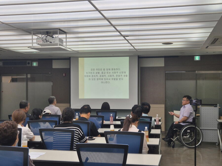 2) 교육내용 : 헌법의 기본권과 UN장애인권 리협약에 대한 이해, 민주시민의 비판적 인식, 차별과 배제의 구조와 차별 사례
