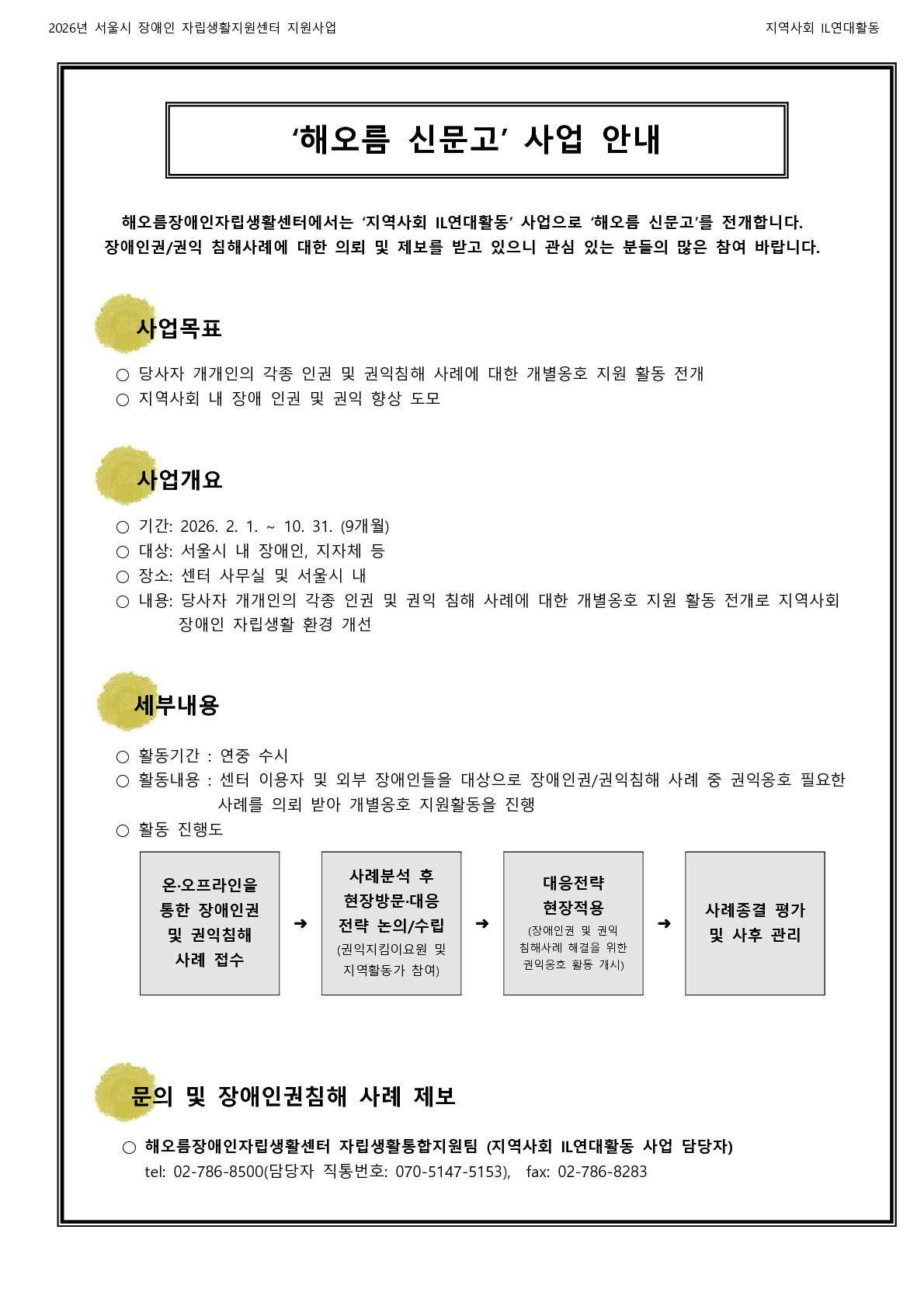 2026년 「지역사회 IL연대활동」 해오름 신문고 사업안내